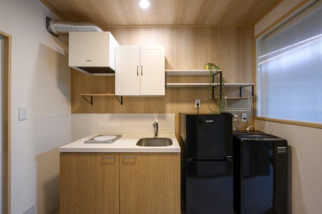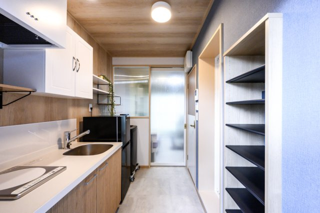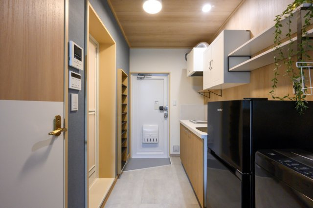 / 陽当り良好 / デザイナーズ / リノベーション / 単身者入居 / 学生歓迎 / 室内洗濯機置場 / フローリング / 二重サッシ / 電気有 / 家具・家電付き / IHクッキングヒーター / 冷蔵庫あり / コンロ1口 / バス・トイレ別 / シャワー / エアコン / インターネット対応 / ネット使用料無料 / TVモニタ付インターホン